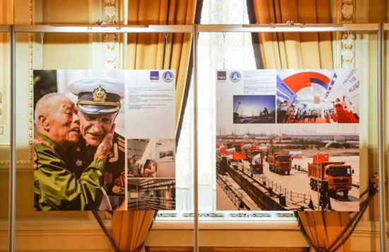 古老的莫斯科大剧院悄然矗立在暮色中,静静地述说着百年沧桑。大剧院内中俄建交70周年图片展展区,一张中俄抗战老战士紧紧相拥的照片格外引人注目。两位老人一身戎装脸贴脸动情拥抱,眼神中、皱纹里都写满了动人的故事。