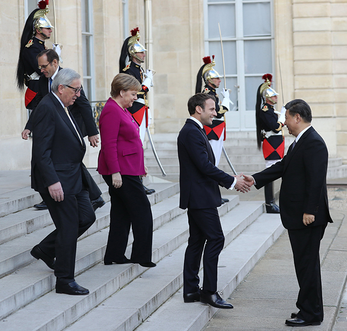 访问欧洲期间,习近平主席同法国总统马克龙以及专程赶到巴黎的德国总理默克尔、欧盟委员会主席容克举行四方会晤,共同出席中法全球治理论坛闭幕式并致辞,向国际社会传递了中国与欧盟坚定捍卫多边主义的积极信号。