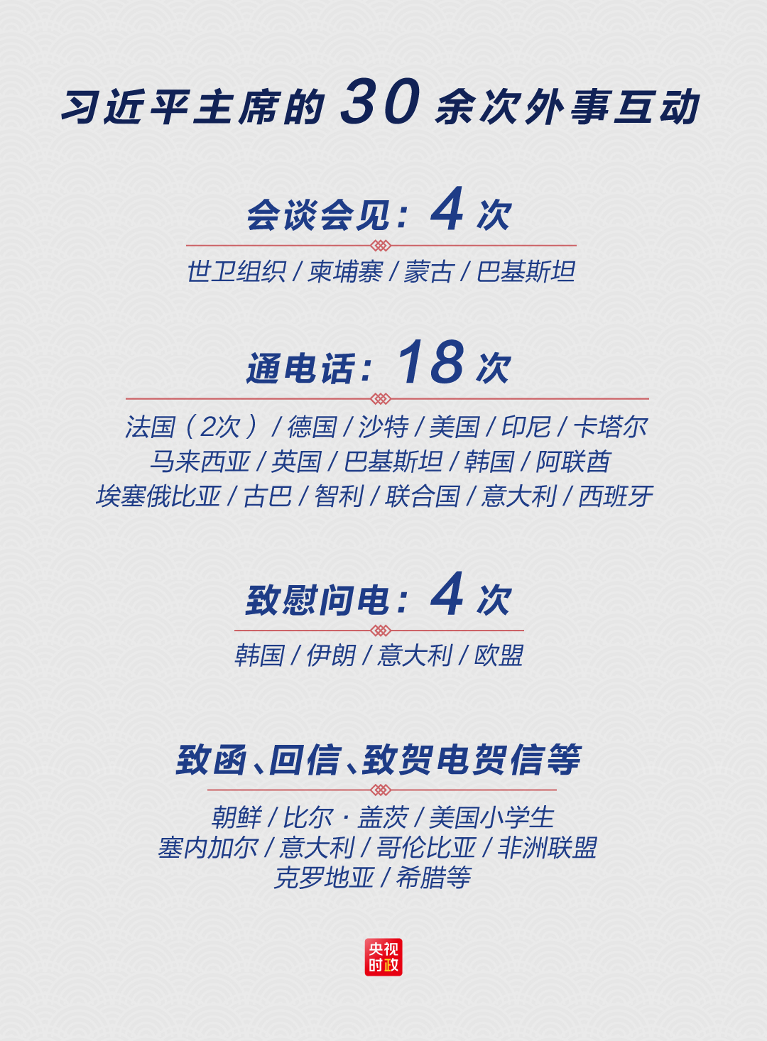 透过战“疫”以来习主席的30余次外事互动,可以清晰看到这些关键词。