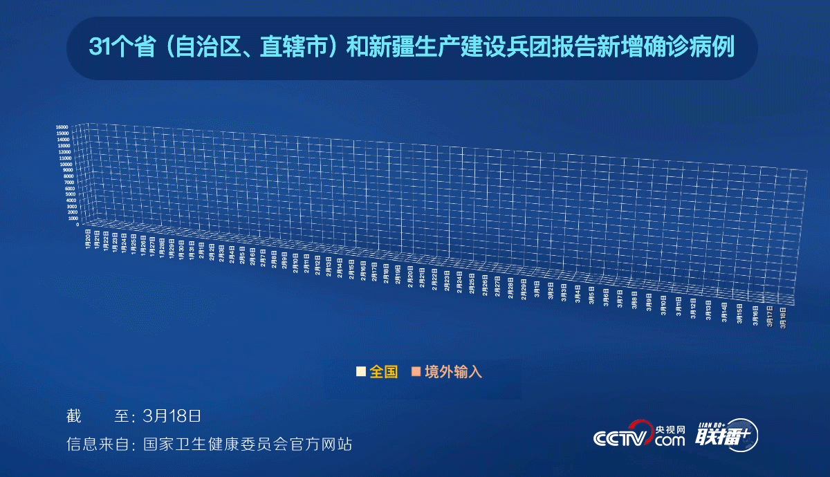 3月18日,我国首次无新增本土确诊病例。截至3月18日,除湖北和境外输入病例外,全国新增确诊病例连续7天为0;除武汉以外,湖北各地新增确诊病例连续14天为0;全国31个省区市和新疆生产建设兵团现有确诊病例降至7263例……