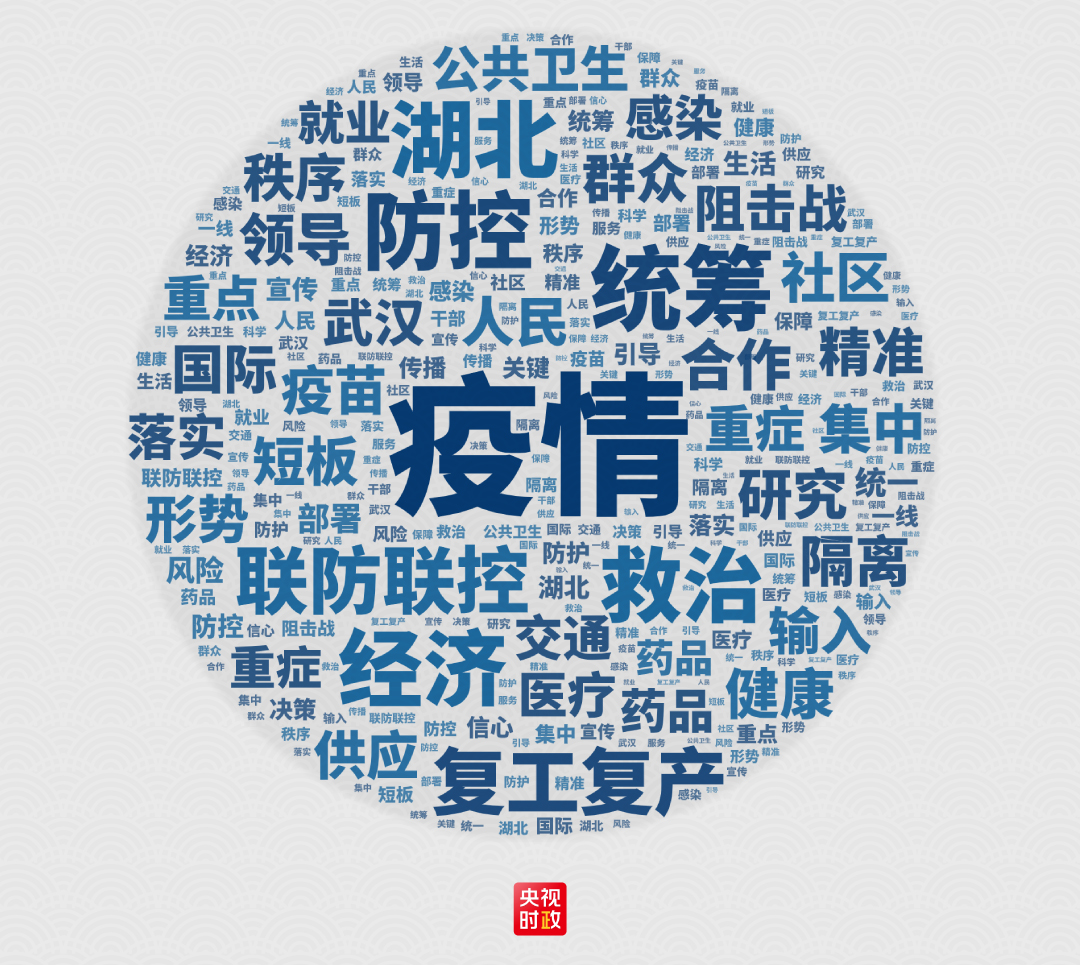 从7次会议的关键词云图,可以更加清楚地看到这场战“疫”的主战场、主攻方向在哪里。从迎击、鏖战到决胜,中国正在为夺取抗击疫情最终全面胜利而奋斗。