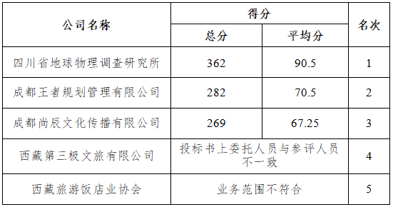 2026年4月13日,西藏自治区文化和旅游厅资源开发处组织召开“2026年旅游名县培育及精品旅游景区等打造运行项目”竞争性磋商会议,对递交文件的5家公司采用综合评分法进行了现场磋商。现公示如下: