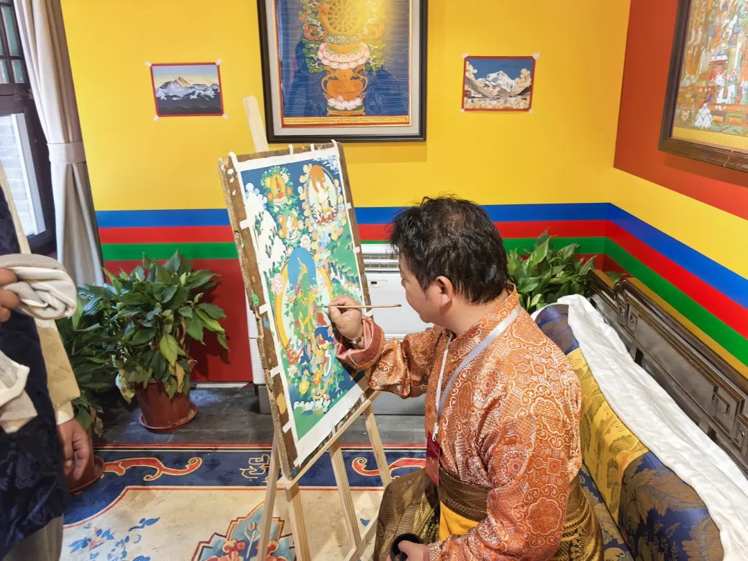 活动在气势磅礴的《索舞》中震撼开场。舞台上,身着金丝织锦藏袍的舞者们身姿灵动、舞步矫健,铿锵有力的节奏瞬间点燃现场气氛。紧接着,男声独唱《神奇西藏》用悠扬歌声诉说着高原的壮美,堆谐《乃宁松珠》以欢快韵律传递着藏族同胞的热情,精彩节目轮番上演,现场掌声如潮,洋溢着热烈欢快的氛围。活动现场,特色展区同样亮点十足、精彩纷呈。唐卡展区内,唐卡师身着传统藏装,手持画笔全神贯注地勾勒图案,矿物颜料在画布上晕染出绚丽色彩,每一笔都饱含着艺术的匠心。唐卡师西洛介绍道:“游客们对唐卡文化充满好奇与热情,我希望通过手中的画笔,传承这份优秀传统文化,让更多人领略唐卡艺术的独特魅力。”在藏医体验区,藏医老师一边为游客诊脉,一边娓娓道来日喀则悠久深厚的藏医文化,让大家感受到传统医学的神奇与智慧。而在氆氇展区,游客们在工作人员的悉心指导下,亲手体验传统纺织技艺。“以前只是听闻氆氇,这次亲眼目睹并亲身实践,真的被它的精美和独特深深吸引。这种传统手工技艺,承载着藏族人民的智慧与情感,是中华民族珍贵的文化瑰宝。”一位游客激动地分享道。土生土长的北京人慧君女士参观后难掩兴奋与震撼:“在珠峰打卡点拍照留念,近距离欣赏唐卡绘画艺术,每一处都让我惊叹不已!”这场文化盛宴,从古老的歌舞表演到精湛的传统技艺展示,不仅是对日喀则传统文化的传承与弘扬,更成为一扇让更多人了解西藏文化的窗口。据悉,此次日喀则轮展活动将持续至7月8日。在接下来的15天里,还将陆续推出传统手工艺制作、藏医药文化科普、高原美食品尝等一系列丰富多样的文化体验活动,期待更多人走进体验馆,感受日喀则的文化魅力。