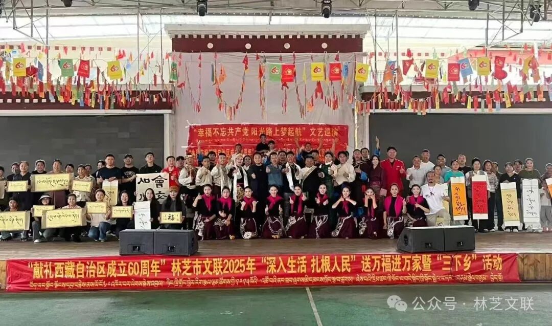 为认真贯彻落实习近平总书记给嘎拉村全体村民重要回信精神、视察西藏时重要讲话精神,按照区党委十届八次全会、市委二届八次全会具体要求和市委宣传部部务会工作安排,10月11日至16日由市委宣传部、市文旅局主办,市文联、市民族艺术团承办,米林市委宣传部、市文联,墨脱县委宣传部、县文联协办的“献礼西藏自治区成立60周年”2025年“深入生活 扎根人民”送万福进万家暨“三下乡”活动在墨脱县格林村某部队、背崩村、莲花广场,米林市米林村、某项目工地顺利开展。本次活动旨在通过送文艺演出、送书画、拍摄打印全家福及汉藏书法长卷巡展等文艺形式,进一步提升各族群众的获得感、幸福感、安全感,为建设繁荣稳固的祖国边疆贡献文艺文化力量。