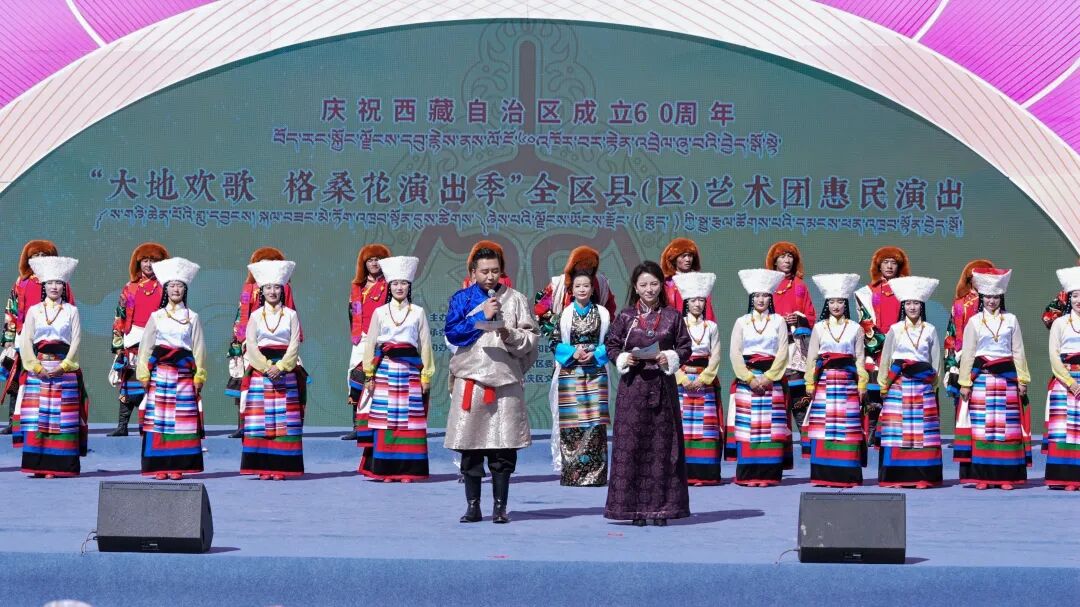 11月2日,由西藏自治区文化和旅游厅主办,西藏自治区群艺馆(区非遗保护中心)承办,各市(地)文化和旅游局、拉萨市堆龙德庆区委宣传部、区文化和旅游局共同协办的庆祝西藏自治区成立60周年“大地欢歌、格桑花演出季”全区县(区)艺术团文艺惠民演出在堆龙德庆区民族团结公园举行。