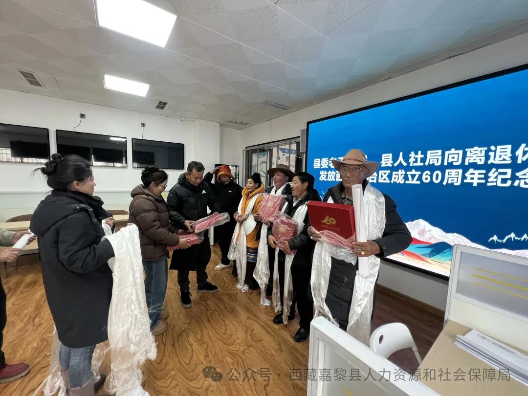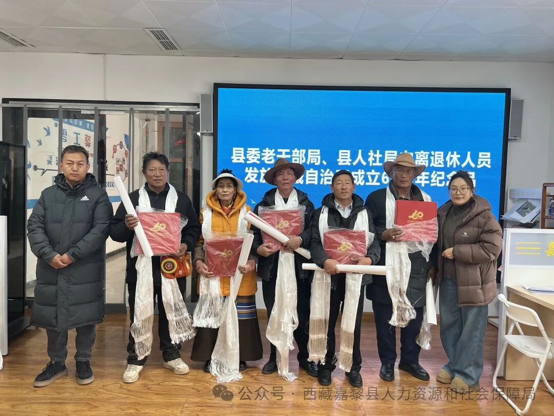 为庆祝西藏自治区成立60周年,体现对离退休干部的深切关怀,传递党委、政府的温暖与敬意,12月30日,县委老干部局与县人社局共同组织开展纪念礼品发放工作,覆盖县城区域内安置的全体离退休干部。