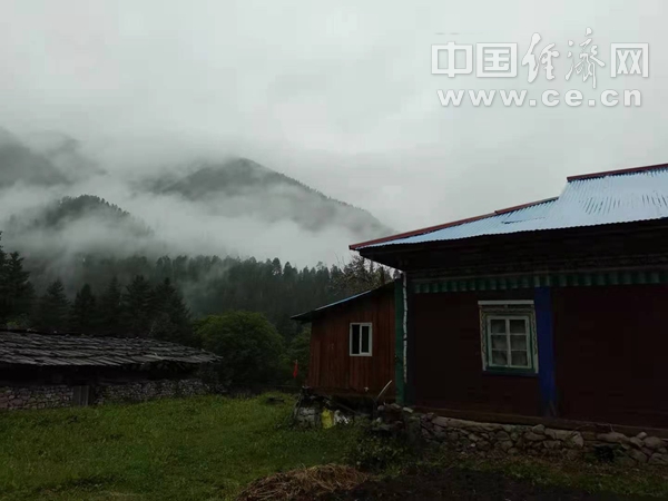 细雨下的巴卡村烟雾缭绕,宛如仙境。中国经济网记者 何欣摄