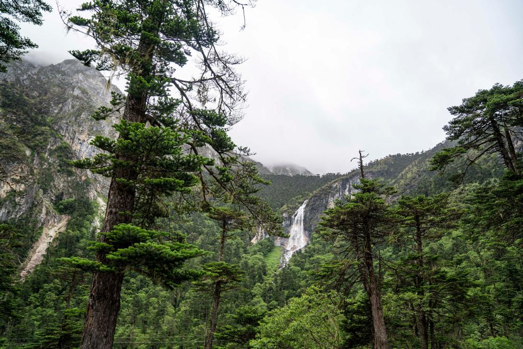 杰罗布村附近拍摄的森林和瀑布(7月1日摄)。新华社记者 孙非 摄