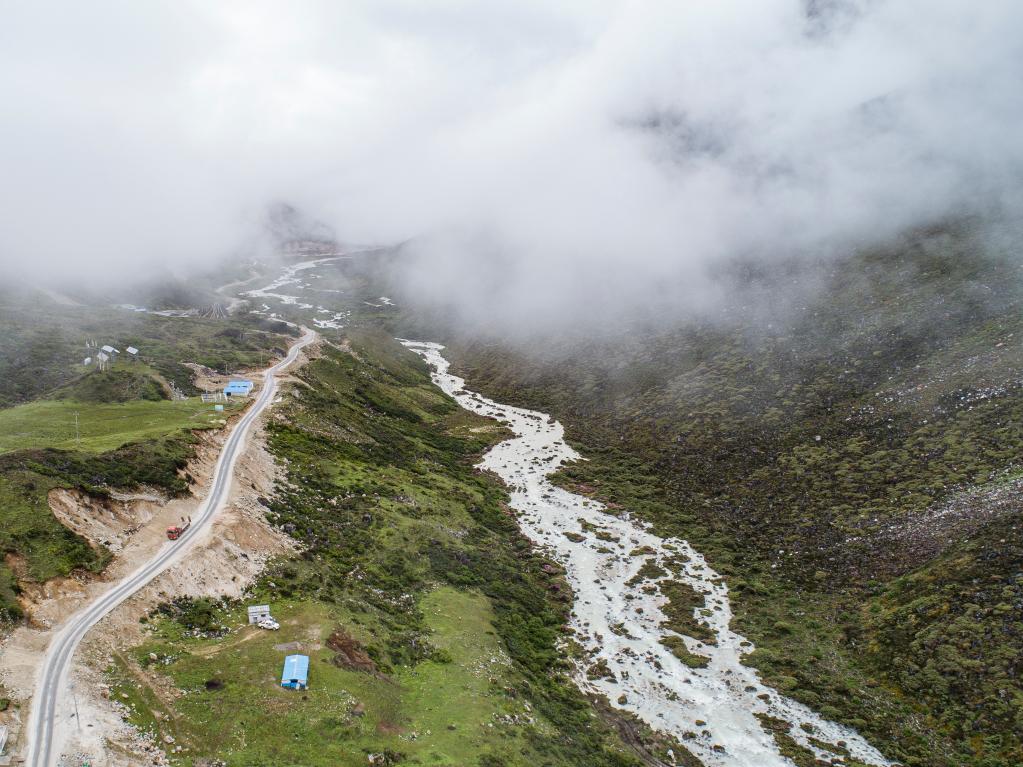 杰罗布村附近的牧场(7月1日摄,无人机照片)。新华社记者 孙非 摄