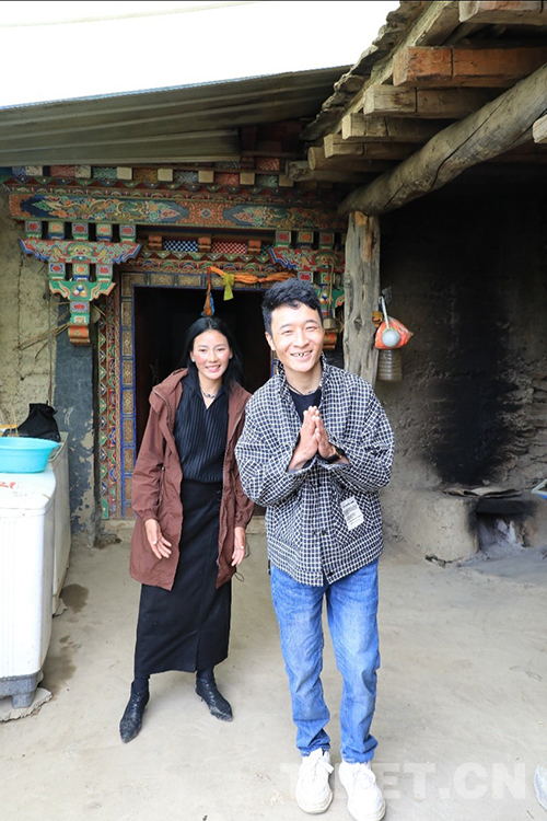 图为索朗白巴和扎西巴姆在家门口迎接我们