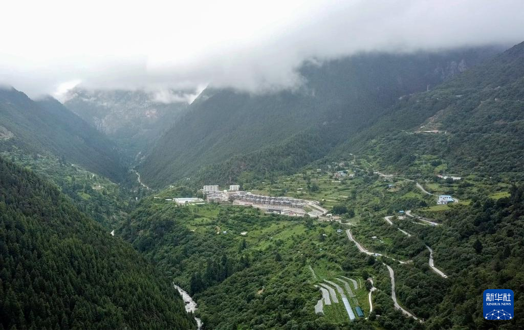 这是错那市贡日门巴民族乡斯木村,画面下方覆盖地膜处为该村的莓茶种植基地。(无人机照片,7月28日摄)。新华社记者 旦增尼玛曲珠 摄