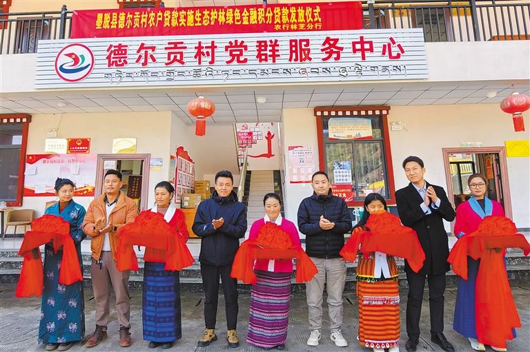 图为农行林芝分行墨脱县支行推出生态护林绿色金融积分贷款发放仪式现场。