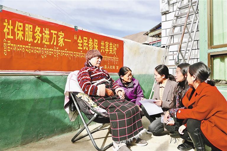 山南市琼结县人力资源和社会保障局工作人员入户办理养老保险待遇资格认证。