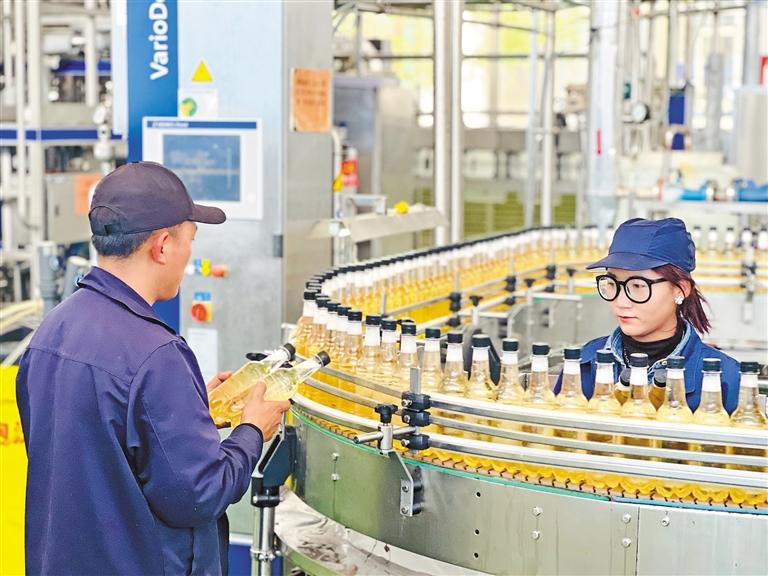 西藏娃哈哈食品有限公司员工在调试灌装机。