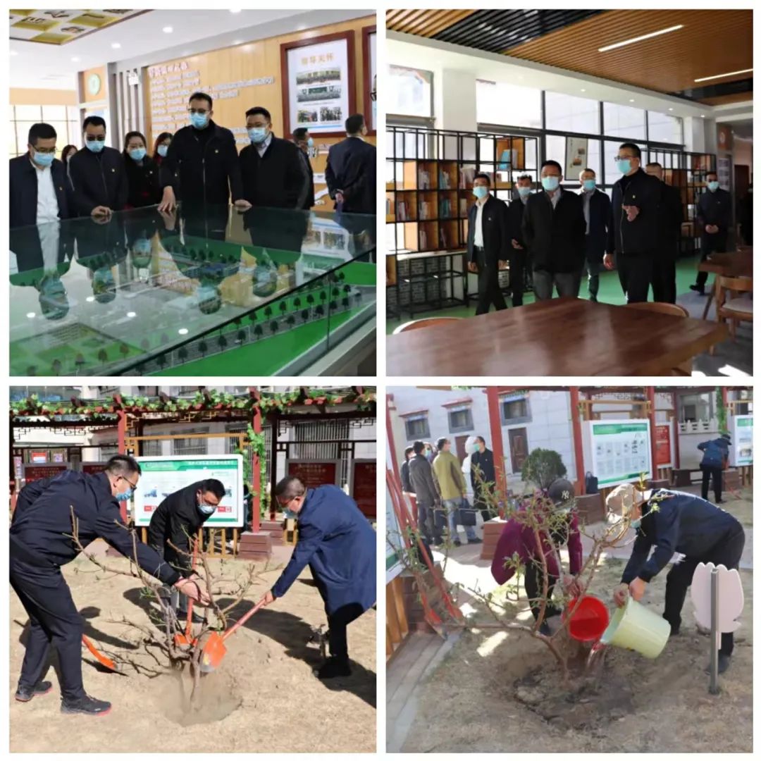 走进学校综合教学楼——智达楼,党员们边走边看边听,仔细观看学校全景沙盘模型,听取了学校规划建设有关情况介绍,了解学校发展历程和现状,并实地参观了学校民族团结创建工作,驻足观看“京藏宏志班”教育精准扶贫特色项目,详细了解学校办学成果、文化建设、“两个融合”等工作情况。在学校民族团结园,全体党员与师生代表一起参加植树活动,种下一株株桃树和李树,增添校园春色,寄望学校桃李满天下。