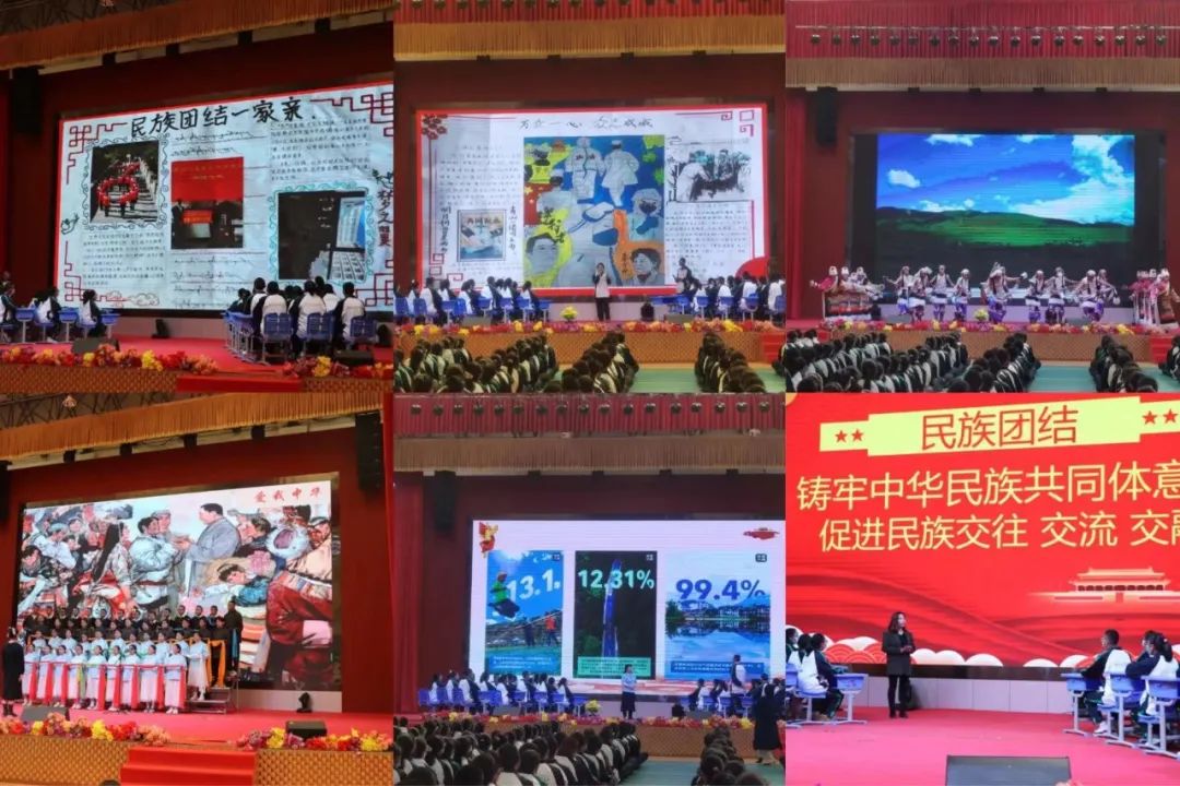 随着习近平总书记关于“铸牢中华民族共同体意识,推动新时代党的民族工作高质量发展”的重要讲话视频播出,主题思政展示课拉开序幕。北京援藏教师刘海雅通过展演“中华民族一家亲 同心共筑中国梦”思政课,从“请同学们谈谈西藏的变化”“请同学们谈谈自己的梦想”等方面,积极引导学生深刻认识和理解“五个认同”“三个离不开”“三个尊重”的现实涵义,不断激发学生增强热爱中华民族、立志建设家乡的强烈愿望,充分发挥出思政课立德、育人功能。本地教师仁青央金采取主题班会的形式开展爱国主义教育,以“刻在骨子里的团结”为主题,把学生分为“梦之翼”“繁星组”“逝华组”三个小组,旨在用身边人、身边事来展现各民族同呼吸共命运心连心,以此培养学生家国情怀、弘扬优秀民族文化。最后,全体党员和师生一同合唱了《妈妈的女儿》《黄河大合唱》等民族团结之歌,嘹亮、激昂的歌声久久回荡在校园每个角落,对伟大祖国的爱和真切祝福深深地烙印在每个人心中。