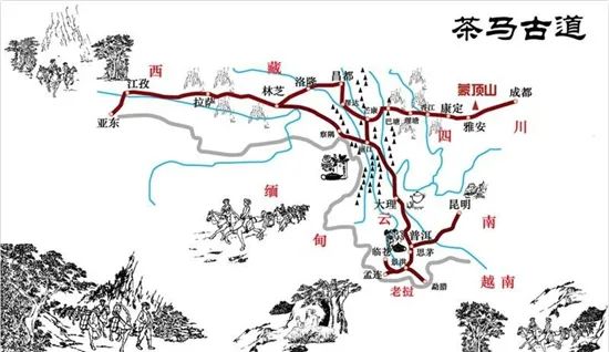 ▲茶马古道是我国历史上运输交易茶叶和马匹的重要通道,在长达1000多年的时间里促进了西南地区的经贸发展、文化交流与民族交融。