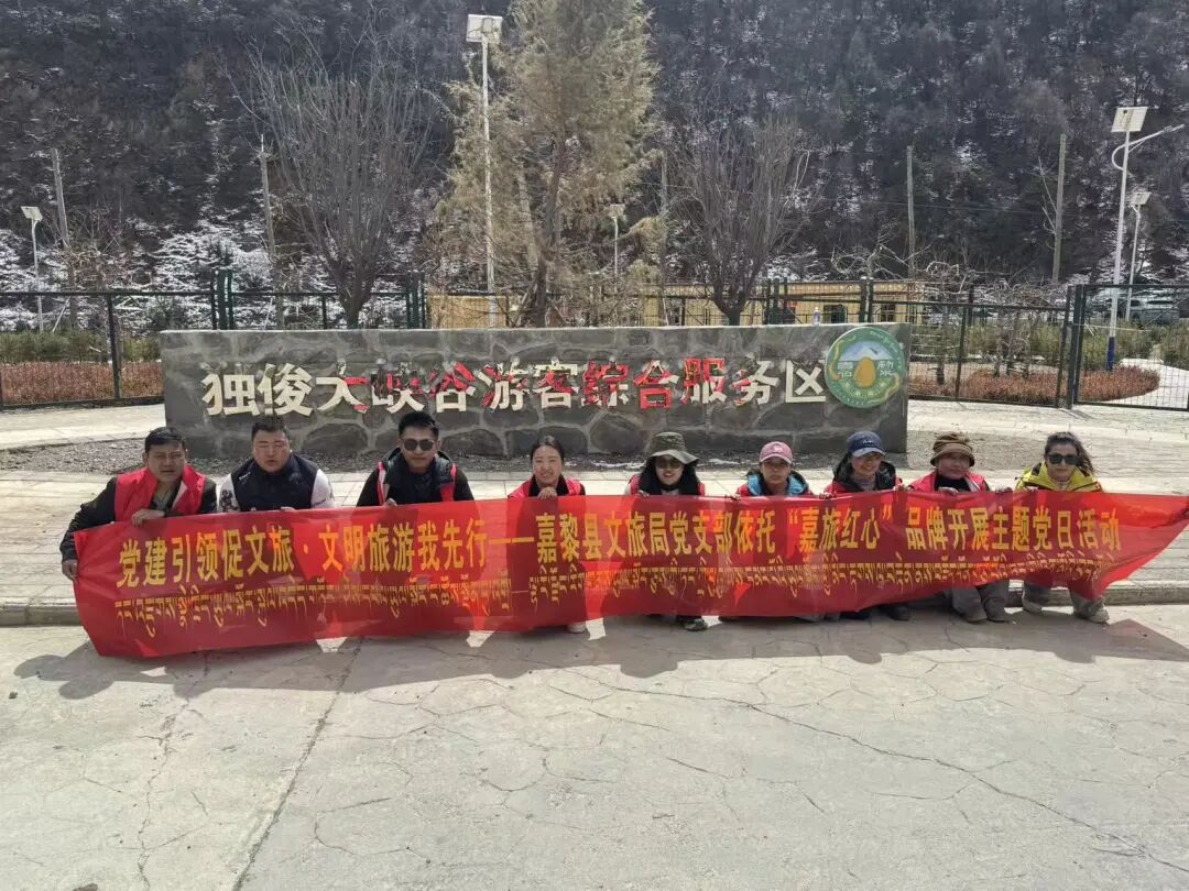 为深入学习贯彻习近平新时代中国特色社会主义思想、党的二十大和二十届四中全会精神,推动党建工作与文旅业务深度融合。3月15日,嘉黎县文旅局党支部以“嘉旅红心”党建品牌为引领,组织全体在家党员干部、文旅企业代表深入独俊大峡谷国家3A级景区,开展“党建引领促文旅 文明旅游我先行”主题党日活动,以实际行动亮身份、践承诺、作表率。