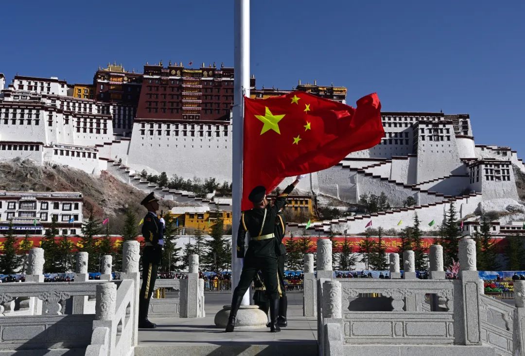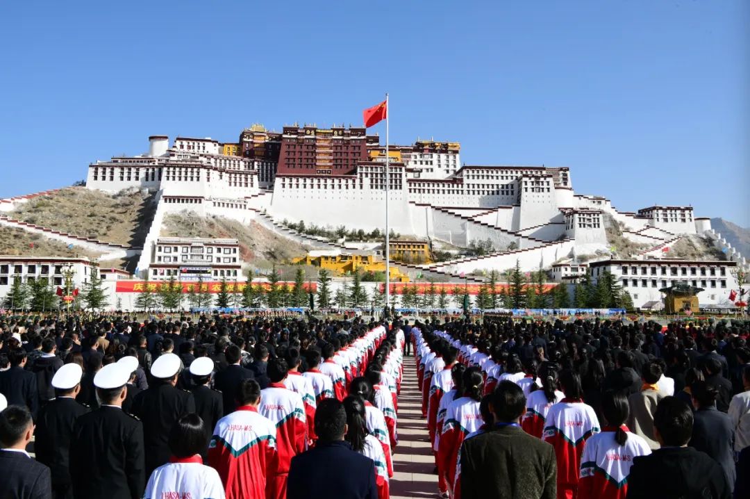 今天上午10时整,在布达拉宫广场举行升国旗仪式,隆重纪念西藏百万农奴解放63周年!在场的各族干部群众望着鲜艳的五星红旗冉冉升起、高高飘扬,心潮澎湃、热血沸腾,以饱满的热情迎接党的二十大胜利召开!