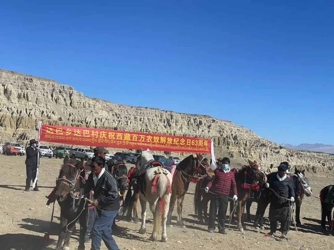 札达县达巴村开展“3·28”西藏百万农奴解放纪念日赛马活动。