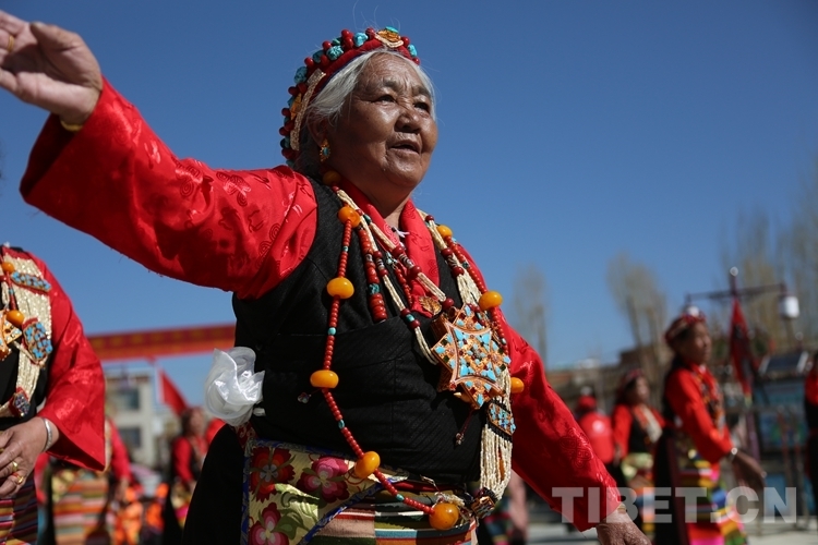 “在我9岁那年,西藏的百万农奴翻身得解放,那时候的阳光和今天一样温暖。63年后的今天,我们跳起锅庄,庆祝63年前的新生,庆祝我们这一生能够享受自由和幸福。”72岁退休干部索朗卓玛说。