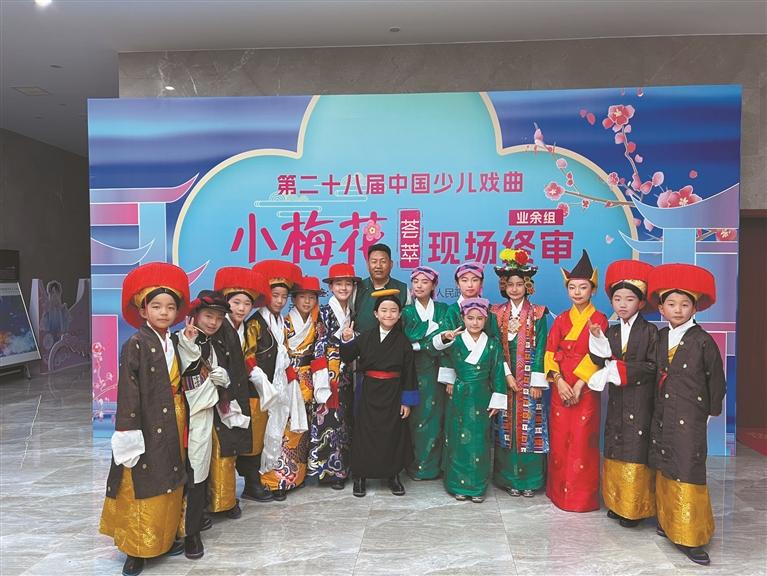 第二十八届“中国少儿戏曲小梅花荟萃”活动上,堆龙德庆区青少年活动中心少儿藏戏班的学生与洛桑扎西合影留念。(除图③外,其余照片均由本报记者 拉巴桑姆 摄)