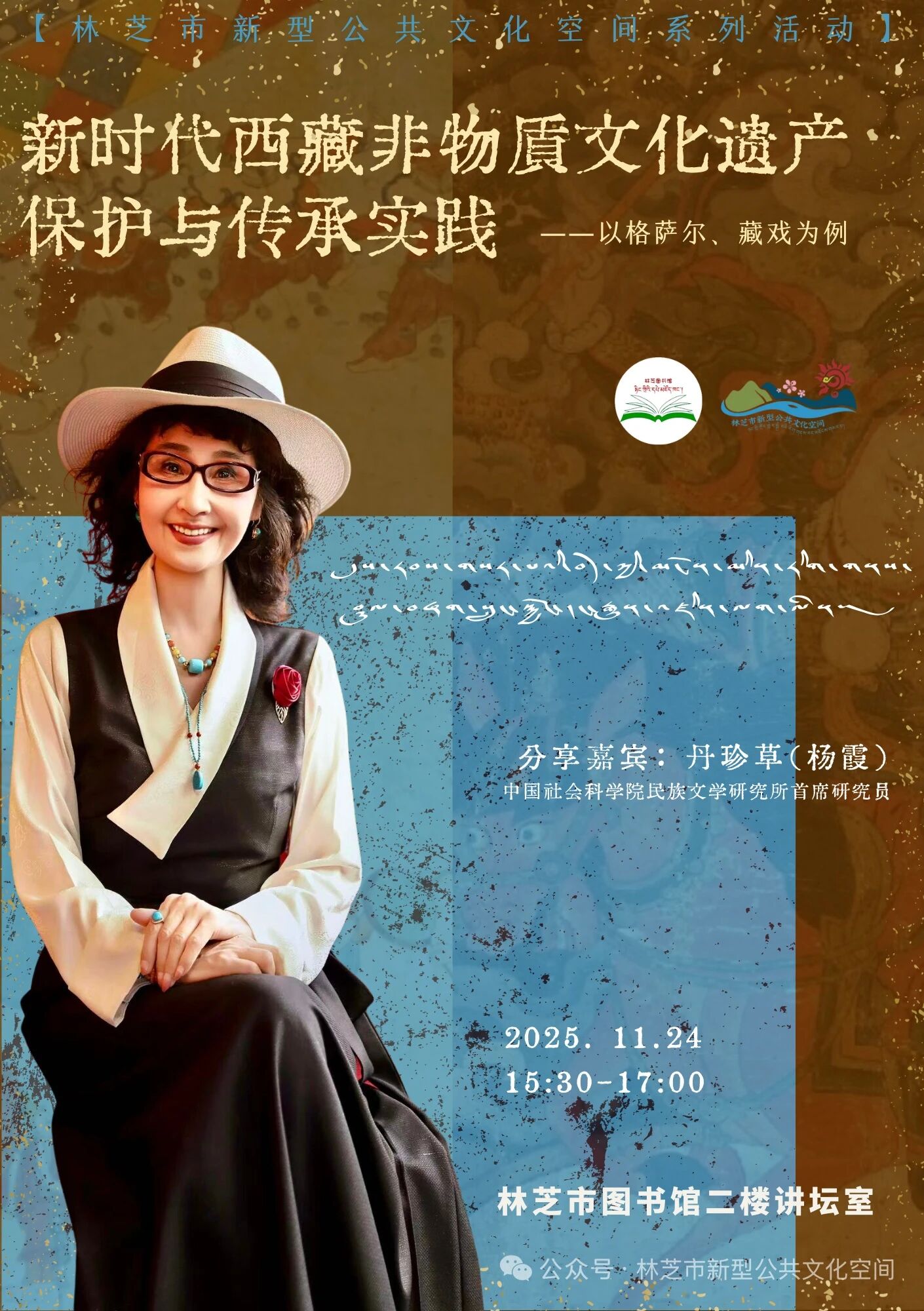 11月24日,丹珍草教授将从史诗传承的千年脉络,到藏戏艺术的活态延续;从非遗保护的宏观策略,到落地实践的微观探索,在兼具学术深度与实践温度的分享中,带您窥见西藏非遗的当代生命力,体悟“人民的非遗,人民共享”的深刻内涵。