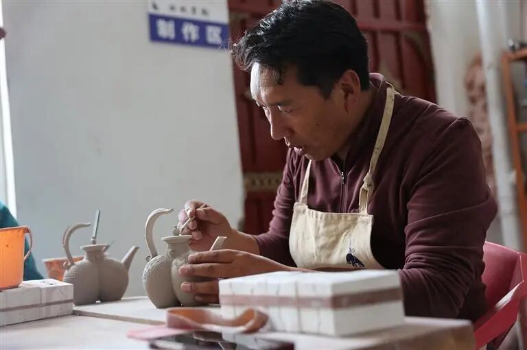 公司实行“按劳计酬”的薪酬制度,为员工提供了稳定的收入保障。这份“家门口”的可观收入,让员工们稳稳撑起了家庭的幸福生活。“以前在家种地,收入没着落,现在在公司做黑陶,不仅学到了一门手艺,每个月还有固定工资,日子越过越有盼头了!”作为曲珠的第一批学生,扎西如今已能独立设计制作复杂的黑陶茶具,月薪稳定在5000元,他的感慨道出了所有员工的心声。这些扎根乡土的手艺人,不仅用双手改变了自身生活,更因对这门技艺的热爱与坚守,成为察雅黑陶传承路上的重要力量。