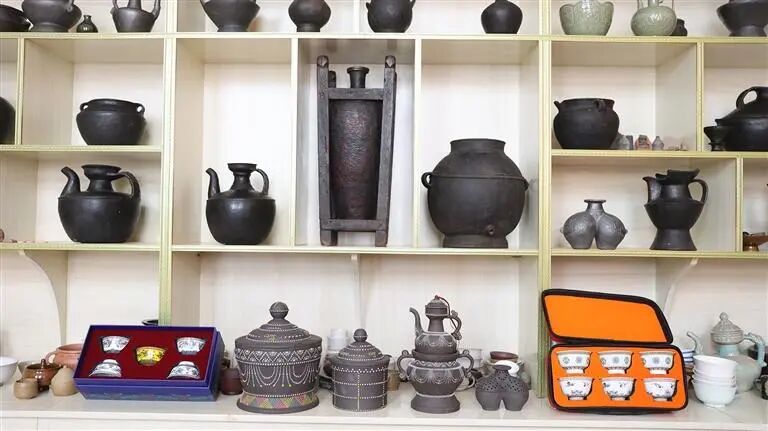 察雅县矿植物颜料有限公司,是一家专业的黑陶制作工坊。在该公司产品展示区,一件件精美的黑陶制品整齐陈列摆放,茶具、锅、碗、摆件……这些在传统技艺上又加以创新的黑陶产品,既坚守了千年传承的“老规矩”,又融入新时代的“新想法”,似在无声诉说着察雅黑陶在时代浪潮中的传承。这样的黑陶在当地深受欢迎,让当地人对其有着一种特殊的情感,无论是盛放酥油、青稞,还是作为摆件,都承载着人们对生活的热爱与对自然的敬畏。