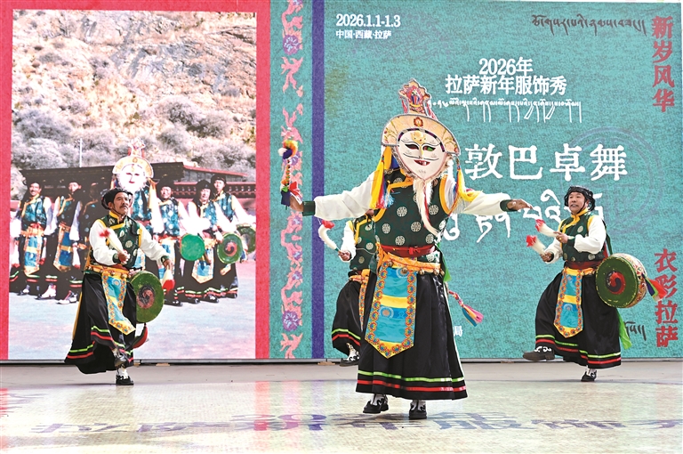 1月2日,“大美天成”拉萨非遗服饰展演在宗角禄康公园举行。活动现场,来自拉萨7个县区的表演团队展示了觉木隆藏戏、拉萨囊玛、牛皮船舞等多项传统非遗表演,赢得了观众阵阵掌声。