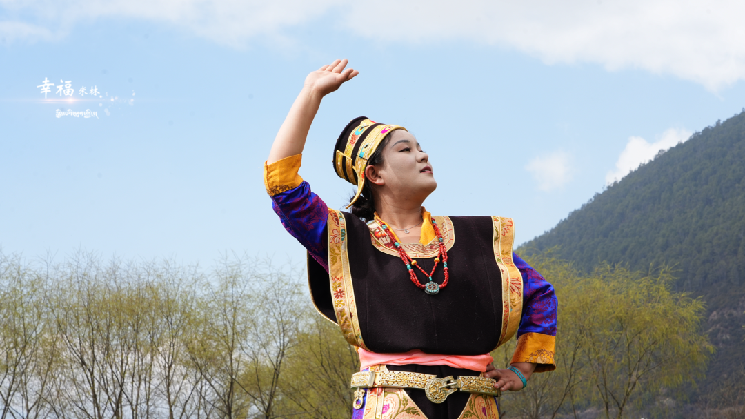 孔雀舞非遗传承人白玛央说:“这是我们从小跳到大的舞,是刻在骨子里的东西。现在我们带着村里的年轻人一起练,就是想把自治区级非遗守住,让更多人知道米林的文化!”