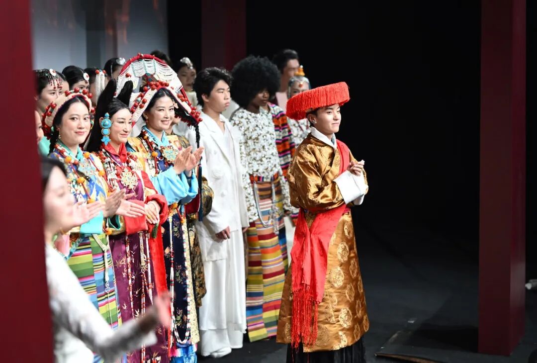大秀开场,洛桑卓玛等七位模特身着班珠丹塔复原并融入非遗技艺的藏装依次登场,瞬间点燃现场氛围。