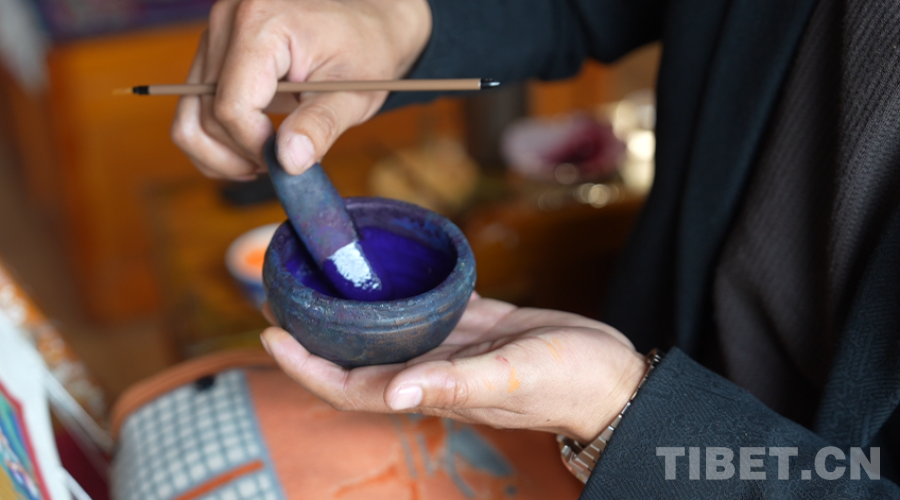 画布在案上平铺,磨得细腻的矿物颜料盛在小碗里,笔尖起落间,佛像的眉眼、山水的轮廓渐渐清晰。在这一方空间里,装着唐卡、木雕、民族绘画等雪域民族手工艺的当下,也连着它们传承千年的过往。